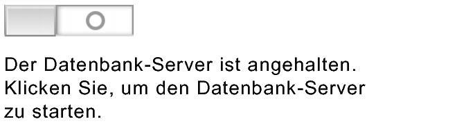 •Wenn Sie den Datenbank-Server stoppen, ist die Funktionalität von Admin Console auf den Statusbereich und die Protokollanzeige beschränkt. Um weitere Funktionen zu verwenden, müssen Sie den Datenbank-Server wieder starten.