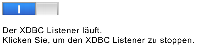 Im Statusbereich gegenüber dem Text ODBC/JDBC starten bzw. stoppen Sie den XDBC Listener wie folgt: