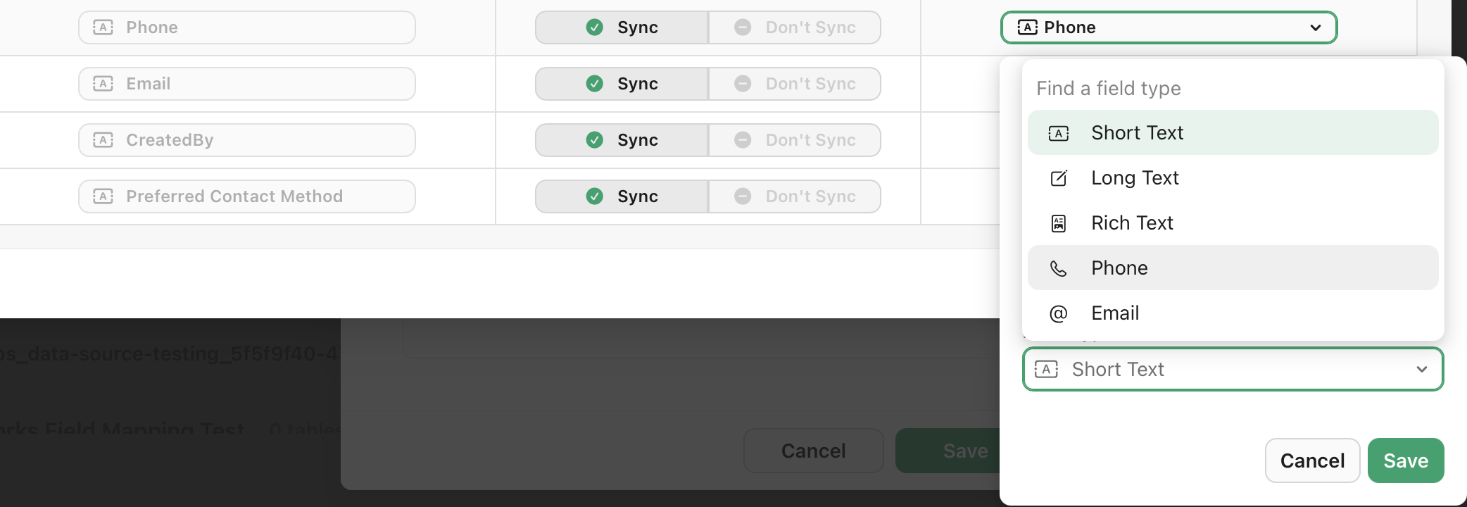 For example, the Phone field in FileMaker may have been stored as a text field, so you can change the field type to the more appropriate Phone field available in Claris Studio.